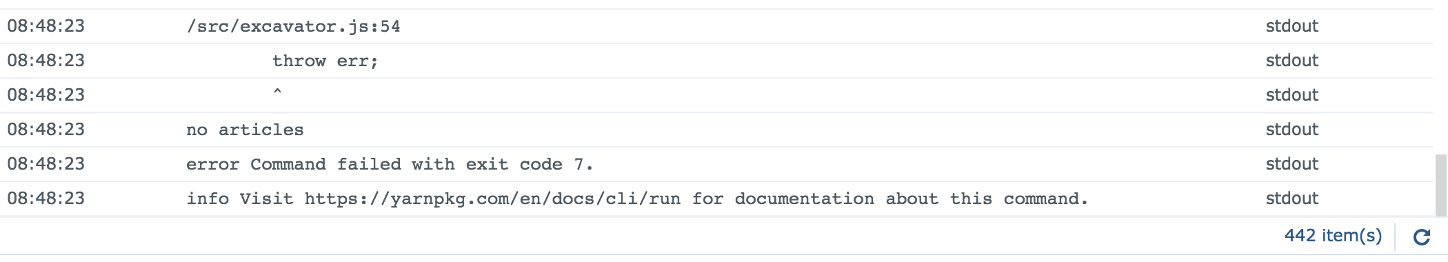 Will occasionally get no articles followed by an error that kills the container. Screenshot from the logs below:
