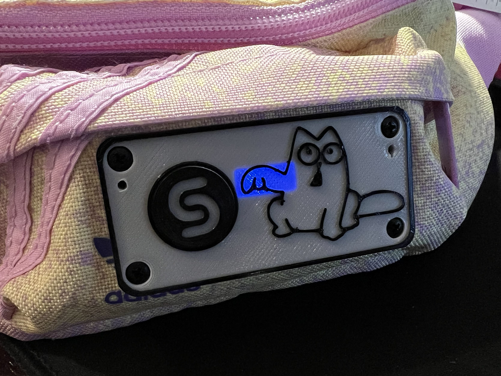 | Finished device inside 3D-printed case & fanny pack | Blue means ready |