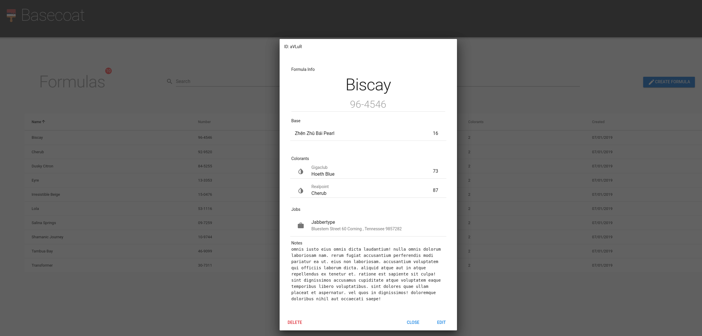 Basecoat is a CRUD formula indexing tool meant to record formulas for certain colors and store them for future reference.