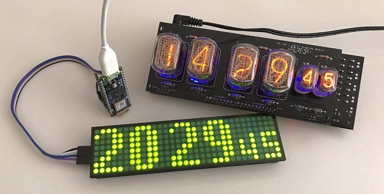 - WiFiNINA and WiFiUdp (Arduino) for Wi-Fi and NTP sync support on Nano 33 IoT