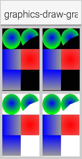The graphics context is already translated to the component origin before paint() runs, but the clearing/drawing logic uses getX()/getY() (and passes getBounds() containing those offsets) when filling and rendering. In the 2×2 grid, the three components whose X/Y are non‑zero end up drawing content offset by their position twice, so their aliased/anti‑aliased panels render off-screen and the resulting screenshots miss those variants. Use component-local coordinates (0,0,width,height) when painting.