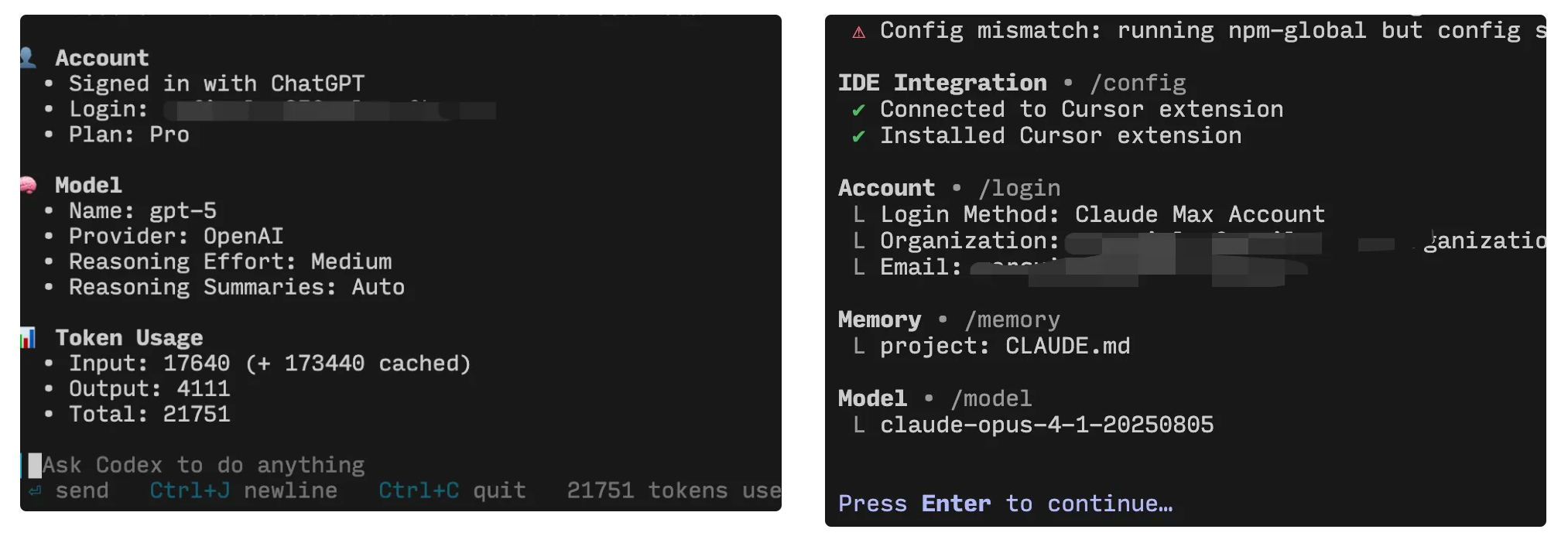 大家好,我是 luckySnail,已经和 Claude Code 结伴编程将近半年,深刻感受到终端里的 AI Agent 的强大之处,同时也更加坚定我要不断体验最新的 AI 编程产品。这不最近 chatGPT 5 发布,社区里很多人分享了 Codex 已经不输 Claude Code。看着大伙都使用上了,心里也是很着急,于是就使用这月的零花钱直接订阅了 chatGPT 和 Claude Code,我这里买的第三方服务,是共享 chatGPT pro 和 Claude Code Max 20x 。也就是当前最贵的两档大模型会员。