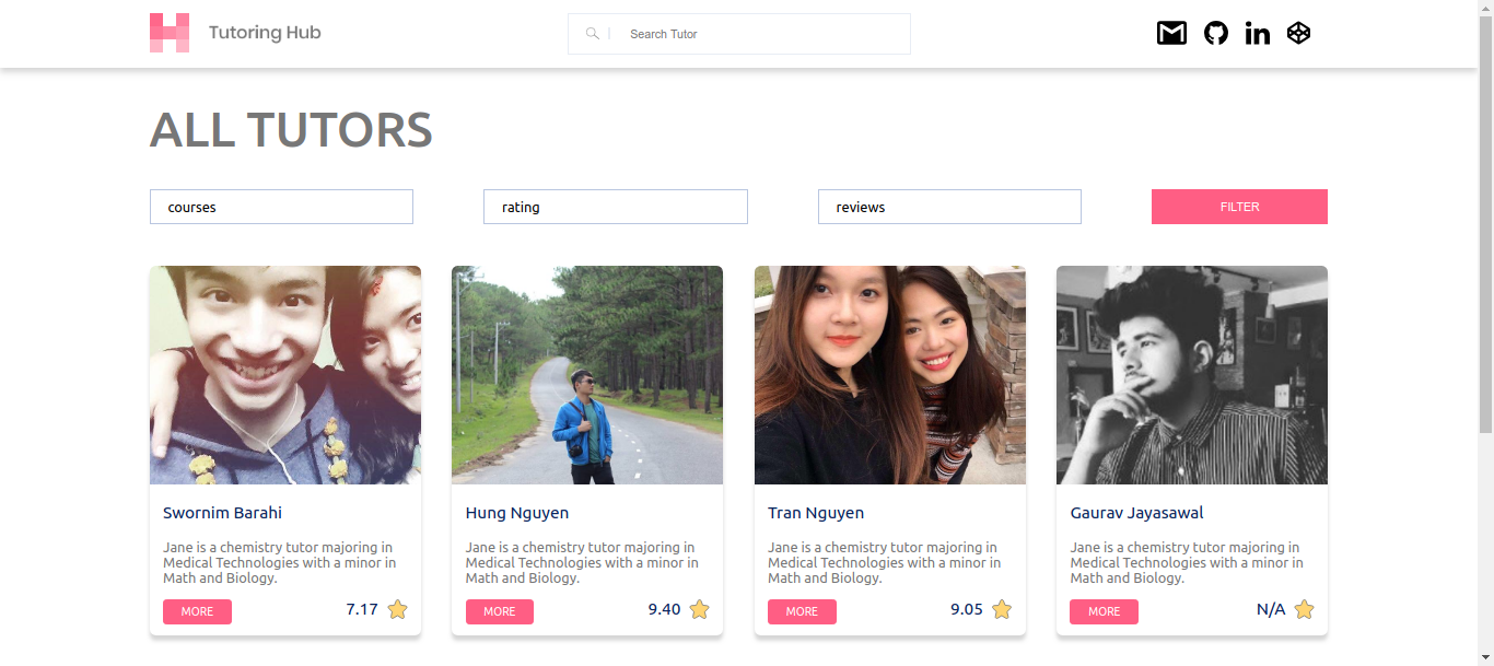- You must have an image CDN to host the tutor images. We use Cloudinary and the project may not work with other CDNs.