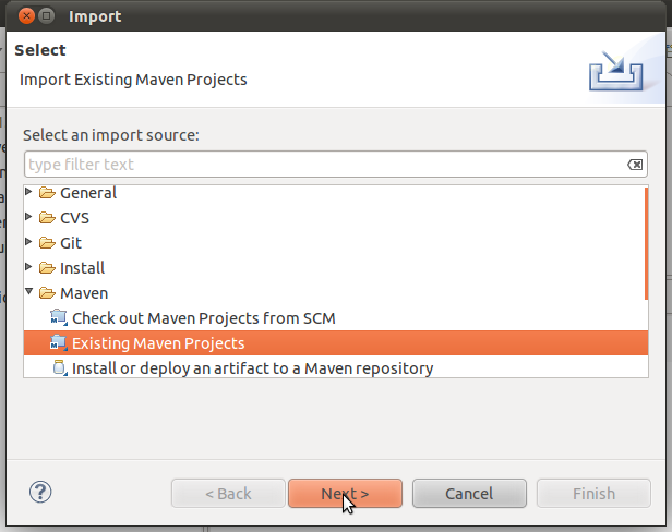 - Import the Maven projects from your local clone of the repository into your Eclipse workspace