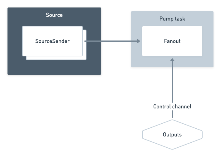 forwarding events into the Fanout. The final pump task (one per source) simply