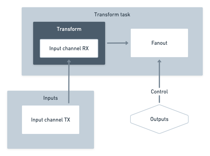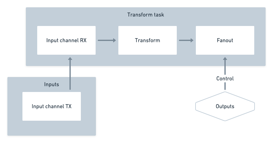 then forwarded to the transform's Fanout instance (task transforms do not