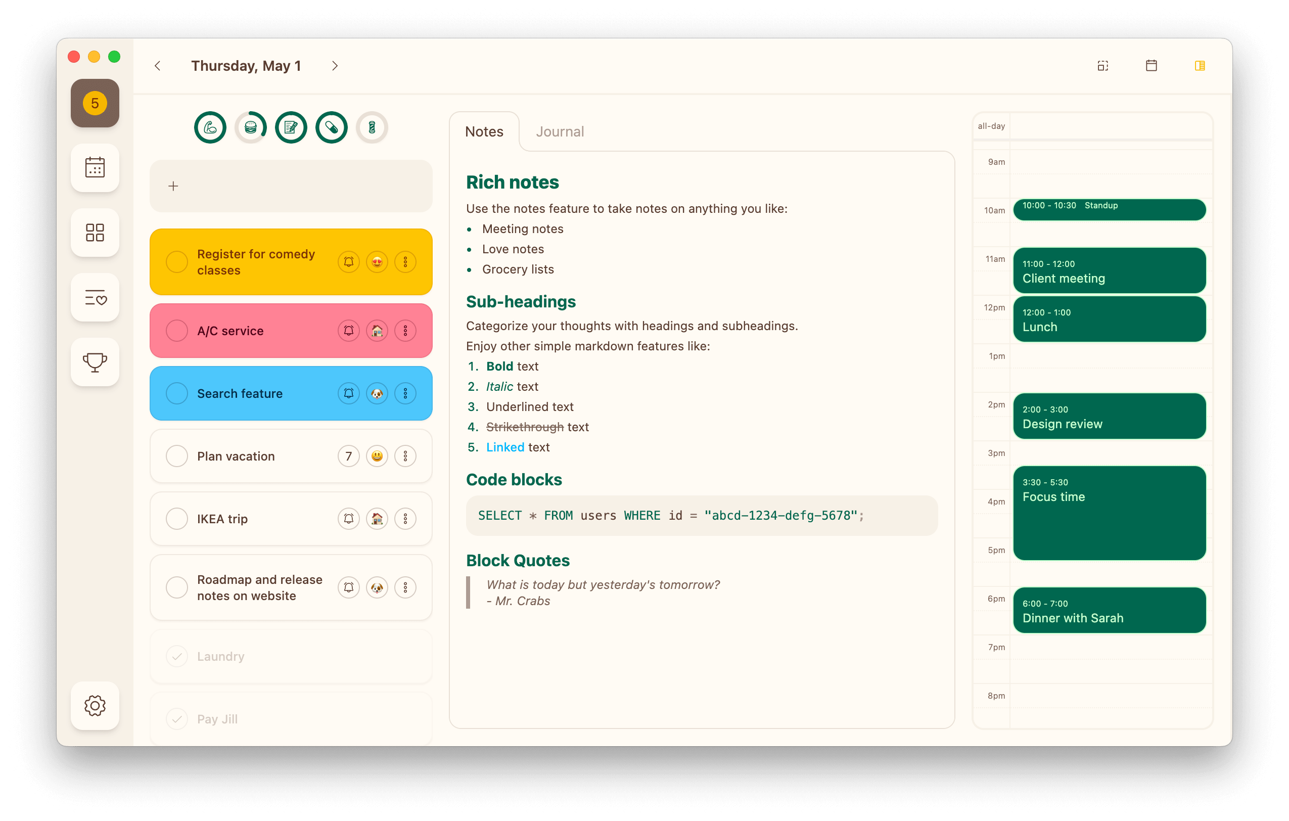 - Full-text search for tasks and notes