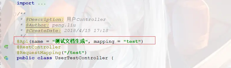 共有6个注解,标注出整个文档信息(我为什么讲那么详细,那么啰嗦,而且我没有把这个项目打成jar包直接给别人使用,就是因为文档生成最大可能是需要特殊定制,确保你拿到该代码可以个性化定制功能,随意修改)。