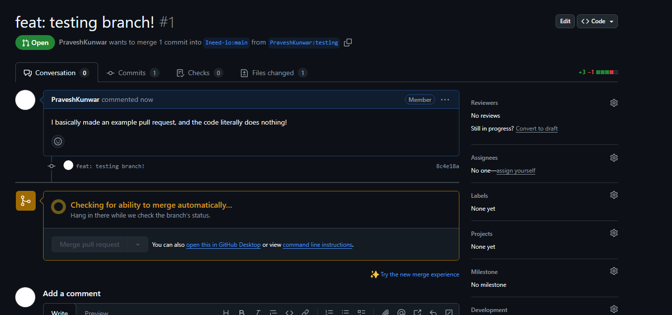 If you ever decide to make a new feature, make sure to do it to a new branch! Never have a feature that you worked on later in the same branch, just make a new branch and work there!