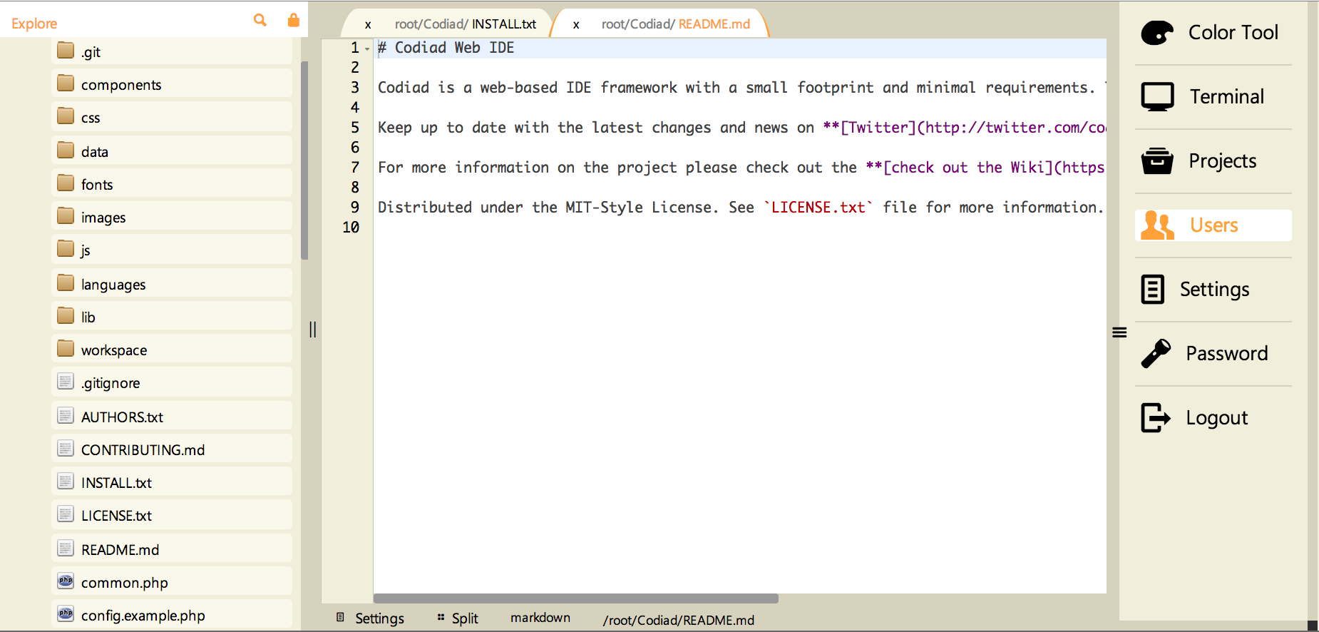 - Enable this theme in Codiad