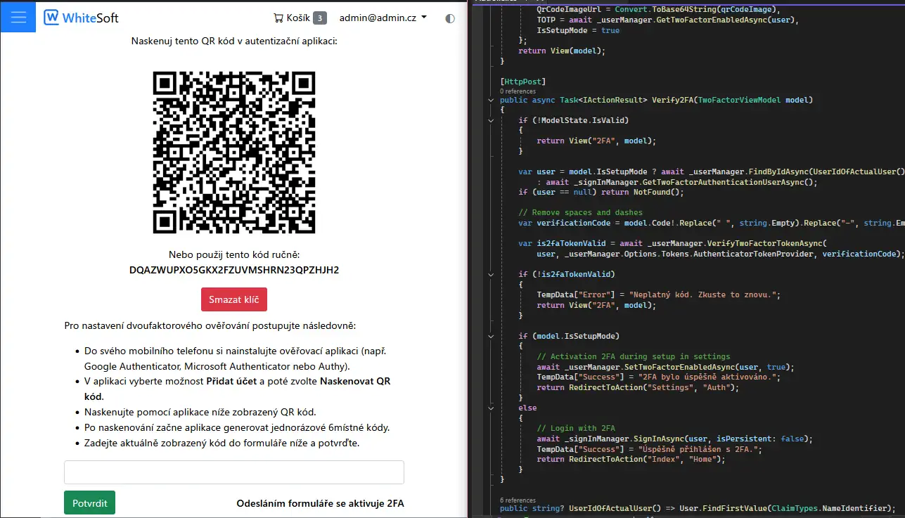 - Dvoufaktorová autentizace (TOTP)