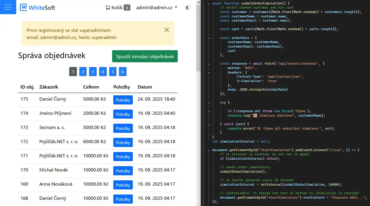- Dynamické generování testovacích objednávek pro administrátorské role