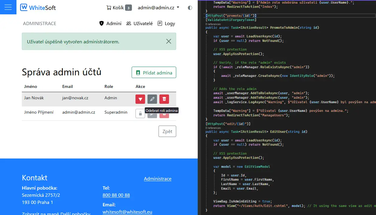 - odebrání administrátorských oprávnění