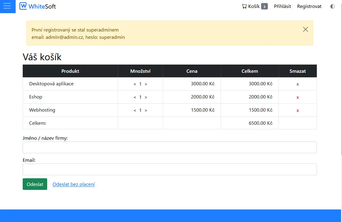 - Implementace košíku objednávek ukládaného do cookies včetně ochrany proti manipulaci s cenami