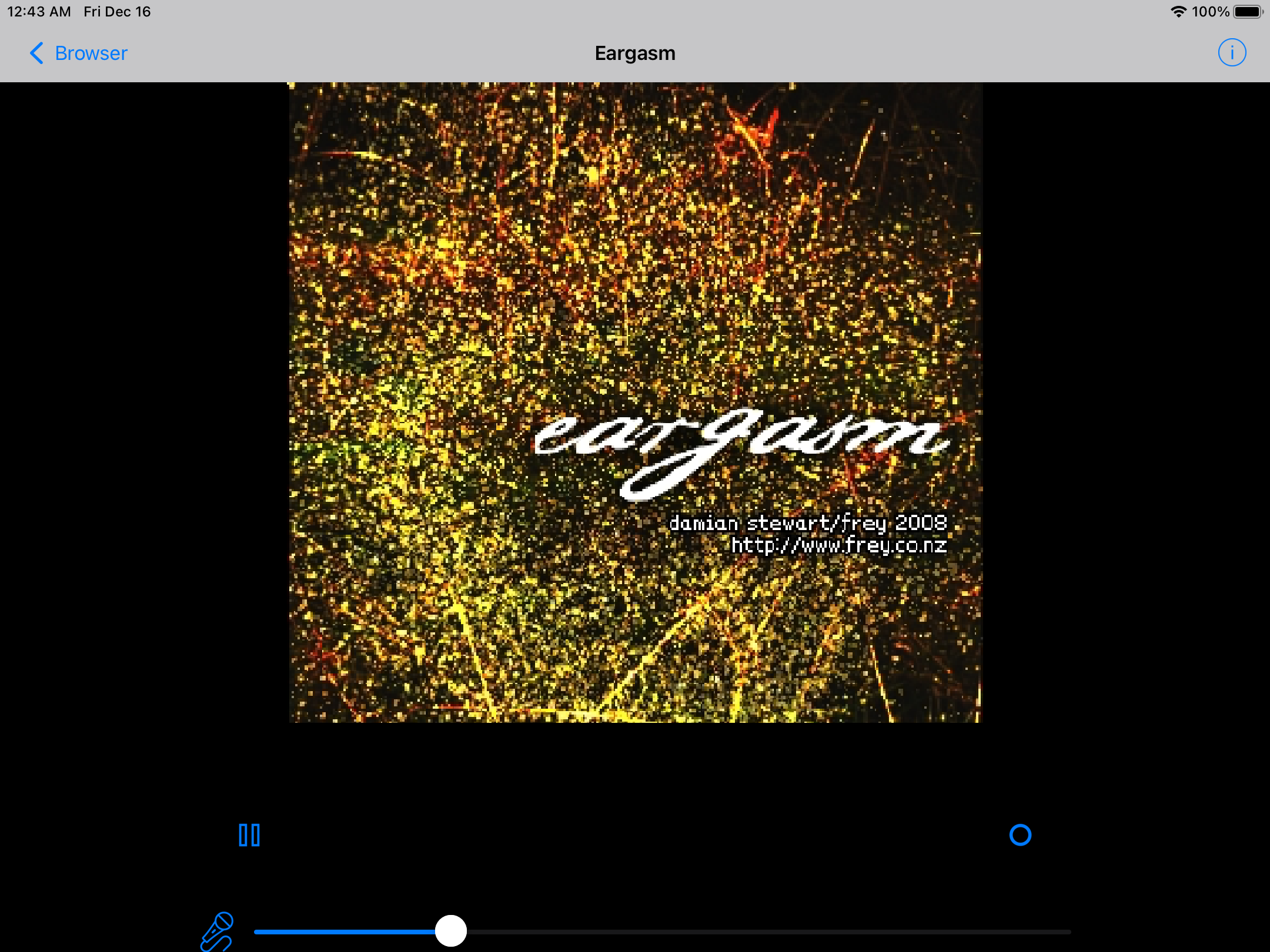 There is also a special scene for playing back recordings (aka .wav files). There is a button for looping the playback and the slider controls the current playback position.