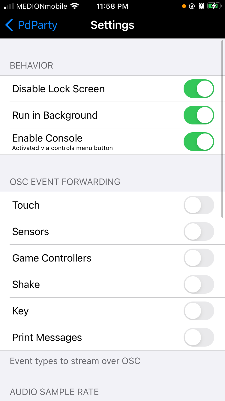 As of PdParty 1.4.0, the following app-specific options are also available: