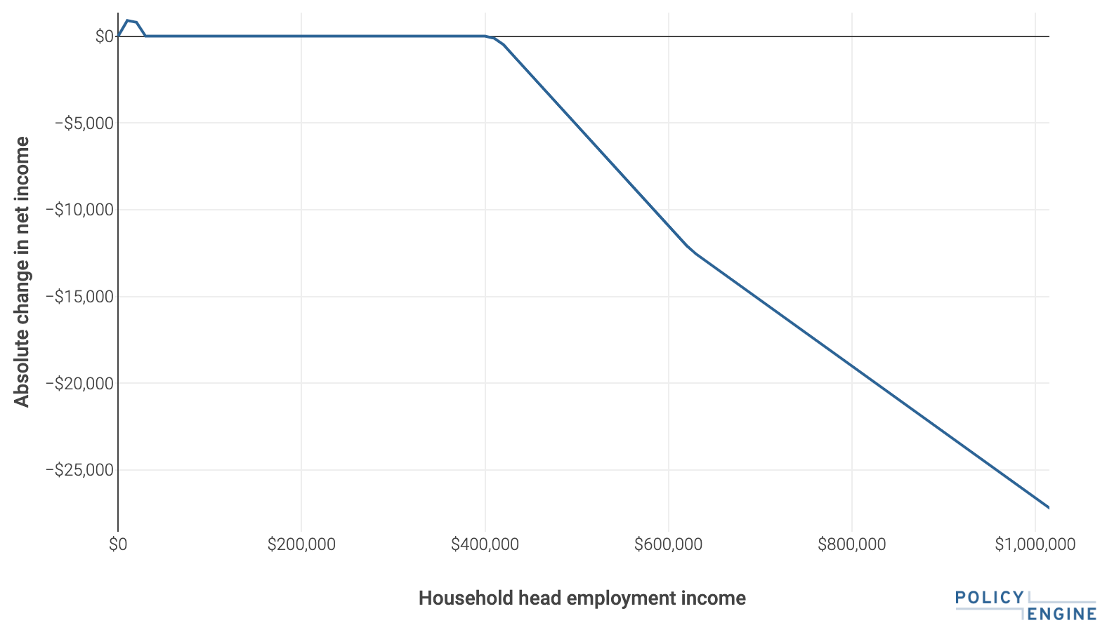 We run the PolicyEngine tax-benefit microsimulation model v0.717.0, using our Enhanced Current Population Survey and assuming no behavioral responses, to project budgetary and distributional impacts.
