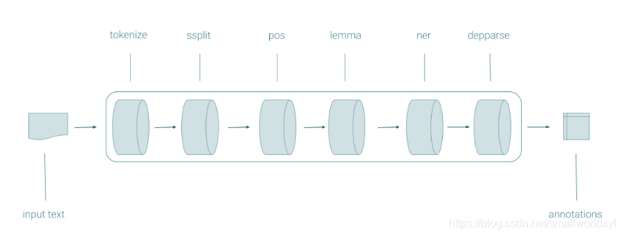 CoreNLP的核心是管道。管道接收原始文本,在文本上运行一系列NLP注释器,并生成最终的注释集。