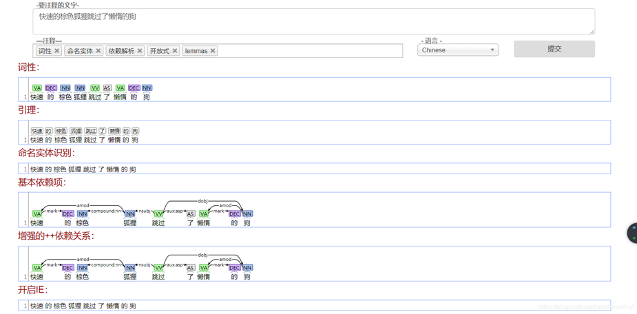 CoreNLP生成各种语言注释,包括:词性、命名实体、依赖解析、共指。