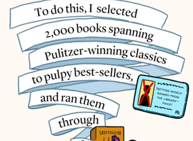 同时,作者根据文化相关性选择书籍:选择范围包括《纽约时报》畅销书、普利策奖提名和获奖者、布克奖入围书籍和获奖者、美国高中和大学经常教授的书籍以及经常出现在最佳名单上的书籍。