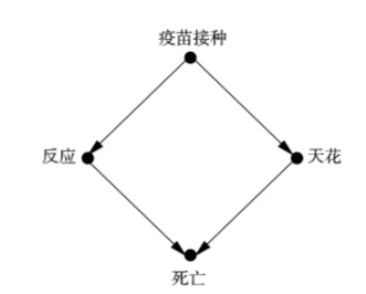 图1.7 疫苗接种示例的因果图。疫苗接种是有益还是有害?