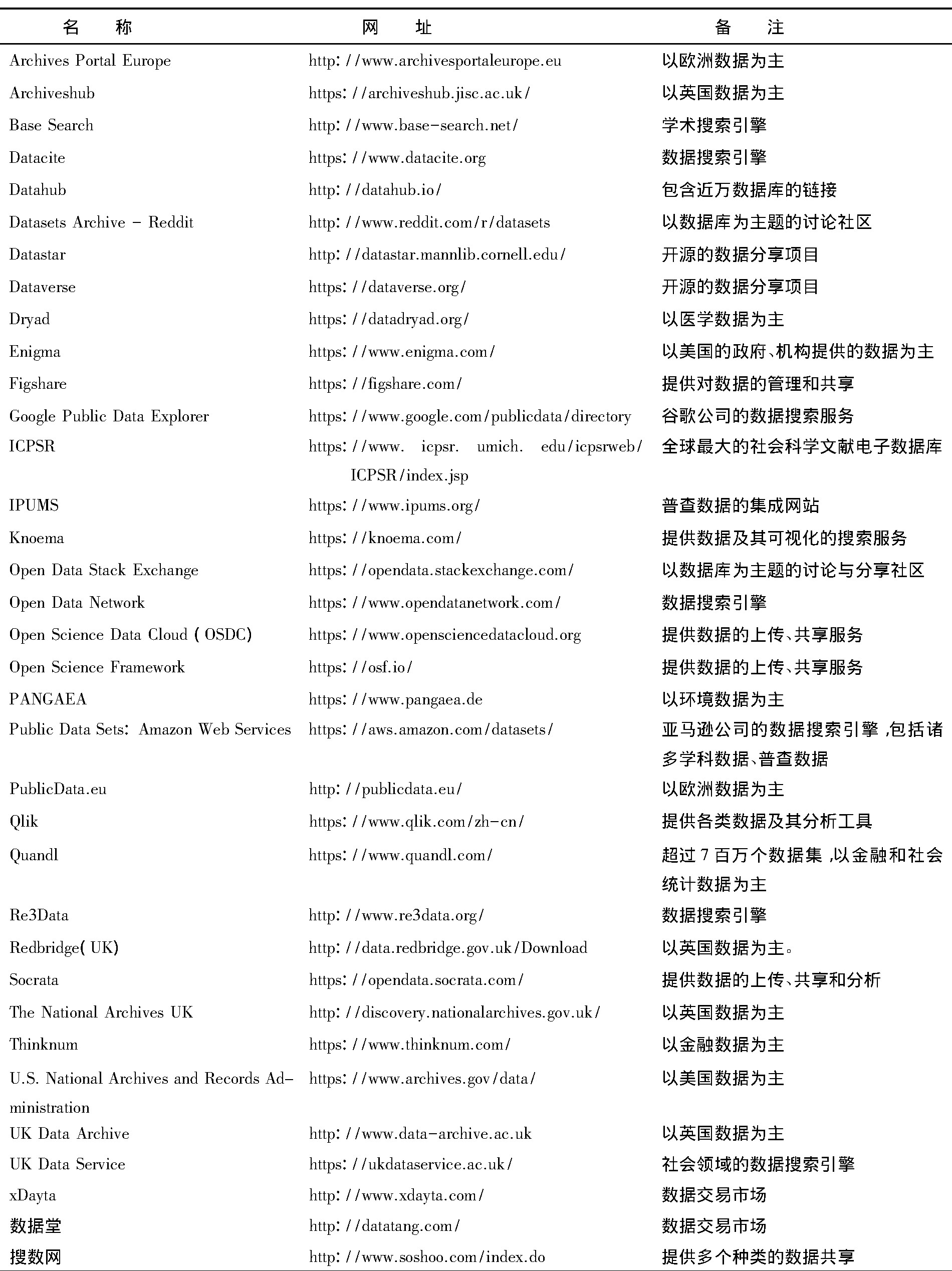 数据搜索引擎是我们最常用的一种搜索方式,下图展示了一些常用的开放数据搜索引擎。