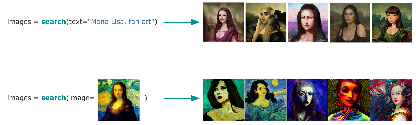 搜索和生成是多模态 AI 中的两项基本任务。在多模态 AI 领域,搜索是指神经搜索,即使用深度神经网络进行搜索。对于大多数人来说,这两个任务是完全孤立的,并且它们已经被分开研究了很多年。但是,搜索和生成是紧密相连的,并且具有共同的二元性。为了理解这一点,我们可以看看下面的例子。