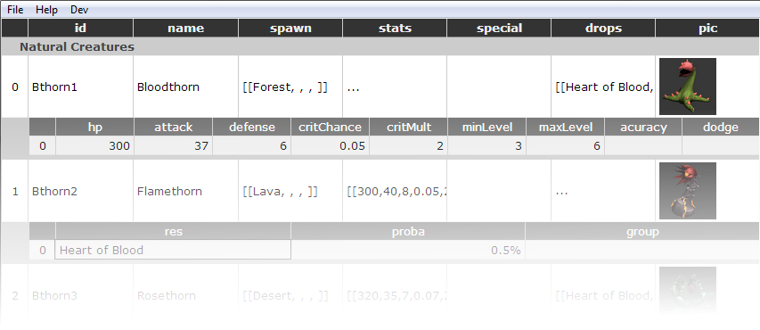 CastleDB looks like any spreadsheet editor, except that each sheet has a data model. The model allows the editor to validate data and eases user input. For example, when a given column references another sheet row, you will be able to select it directly.CastleDB stores both its data model and the data contained in the rows into an easily readable JSON file. It can then easily be loaded and used by any program. It makes the handling of item and monster data that you are using in you video game much easier.