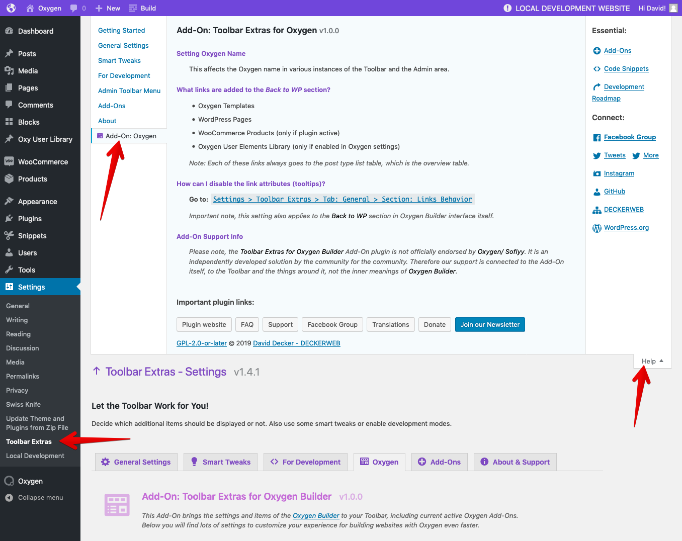 - Adds links to settings of Oxygen Add-On Plugins (only if these are active)