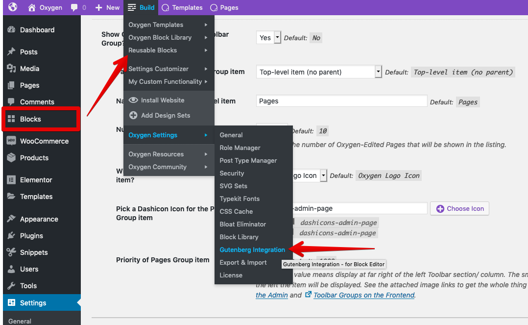 - Go to Settings > Toolbar Extras > General to set "Oxygen Builder" as your default Page Builder