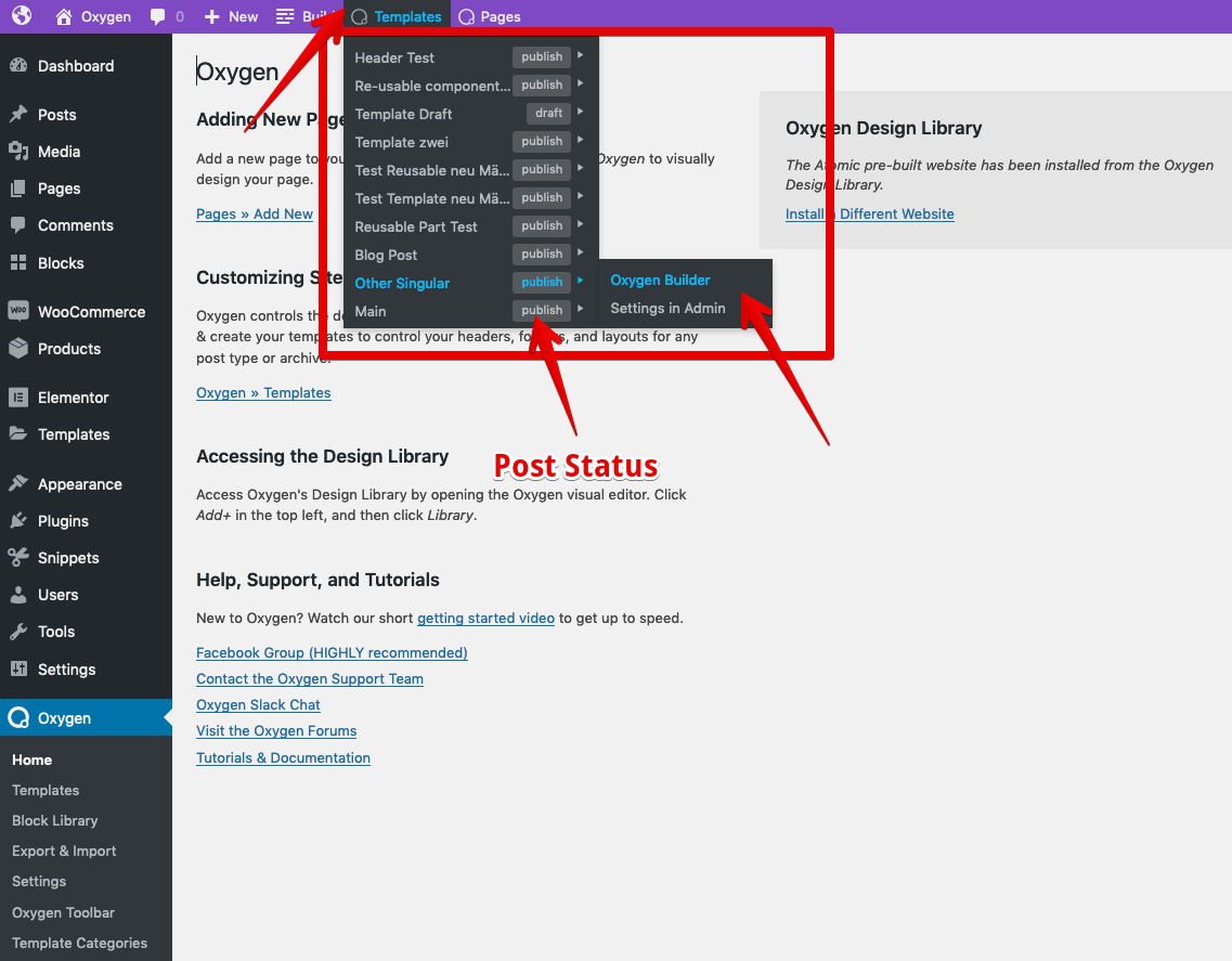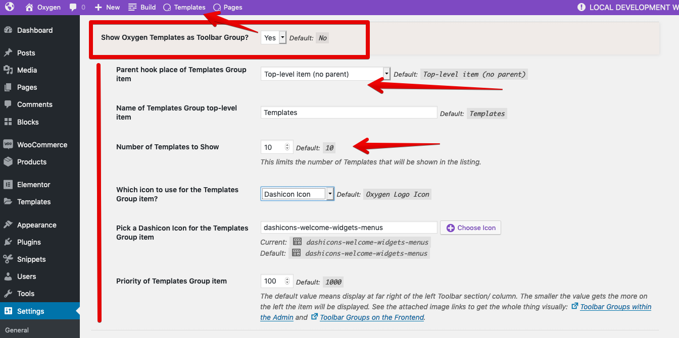 - New: For Oxygen Template post type, added new optional Template Group as a top-level item, or as sub item in the Build Group - has lots of options for customizing