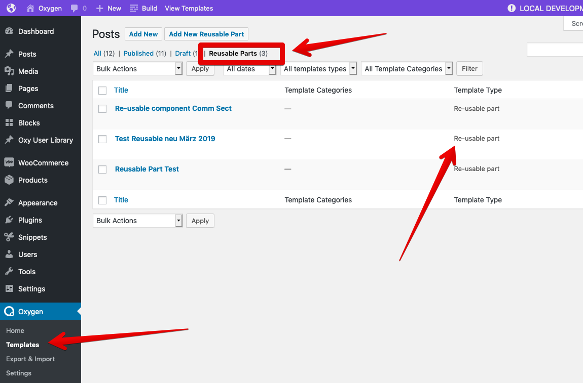 - Add additional view to filter Oxygen Reusable Parts only - in Templates post type list table (overview table)