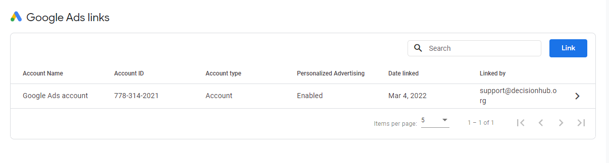 So all our data for google Adwords will automatically go to our main decision hub account once setup