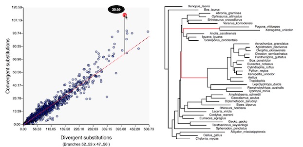 Also see Castoe*, de Koning* et al 2009. "Evidence for an ancient adaptive episode of convergent molecular evolution." PNAS v106(22): 8986-8991. http://www.pnas.org/content/106/22/8986.abstract