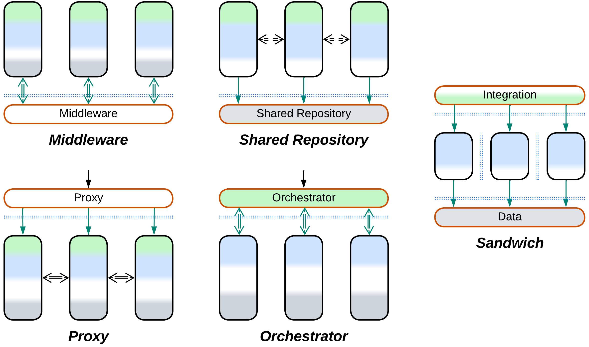 Backends for Frontends dedicate one or two components (a Proxy and/or Orchestrator) per each kind of client.