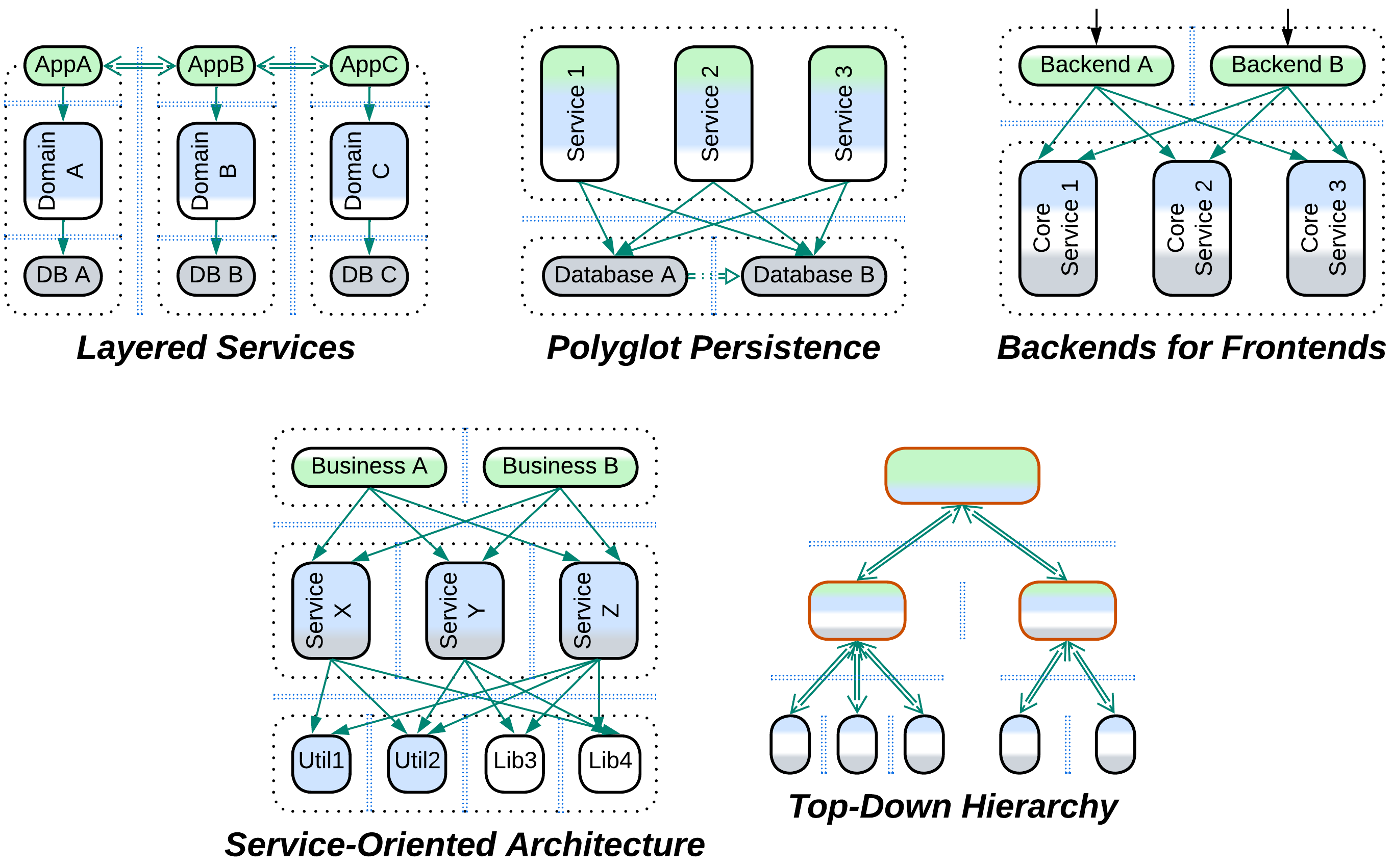 Layered Services first decouple the subdomains, and then the layers within each subdomain: