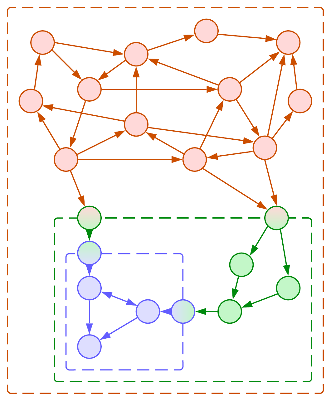 A module may encapsulate not only individual concepts, but even other modules. That is not surprising as an OOP class is a kind of module – it also has public methods and private members. Hiding a module inside another one removes it from the global scope, decreasing the operational complexity of the system – now it is not the system’s architect’s responsibility but the responsibility of the maintainer of the outer module who cares about the inner module. On one hand, that builds a manageable hierarchy in both the organization and the code. On the other hand, code reuse and many optimizations become nearly impossible as internal modules are hardly known organization-wide: