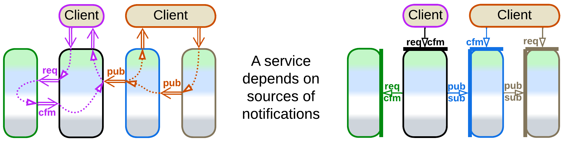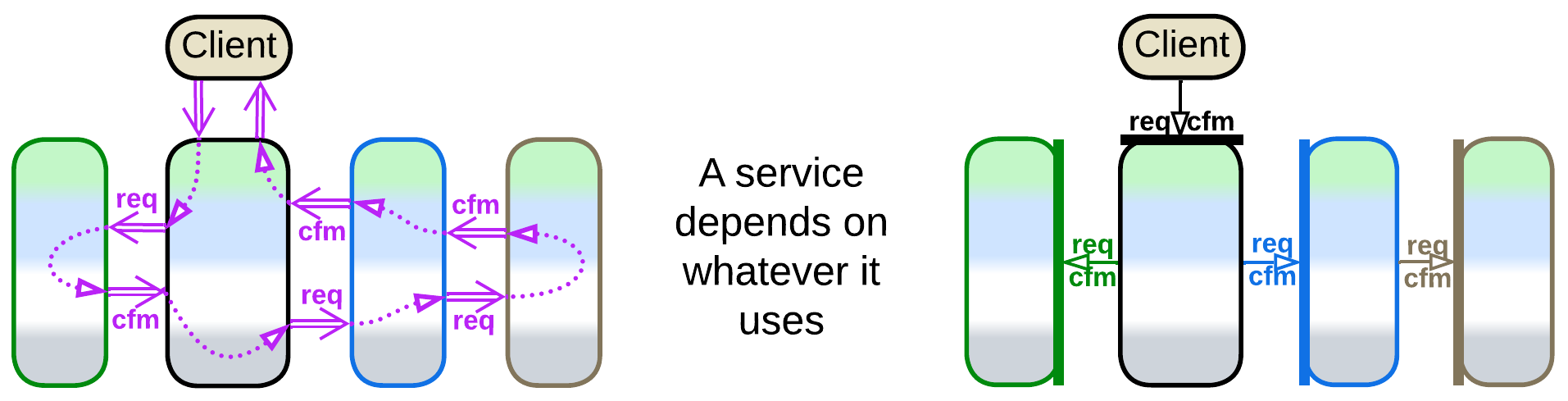 Services also differ in the way they communicate which influences some of their properties:
