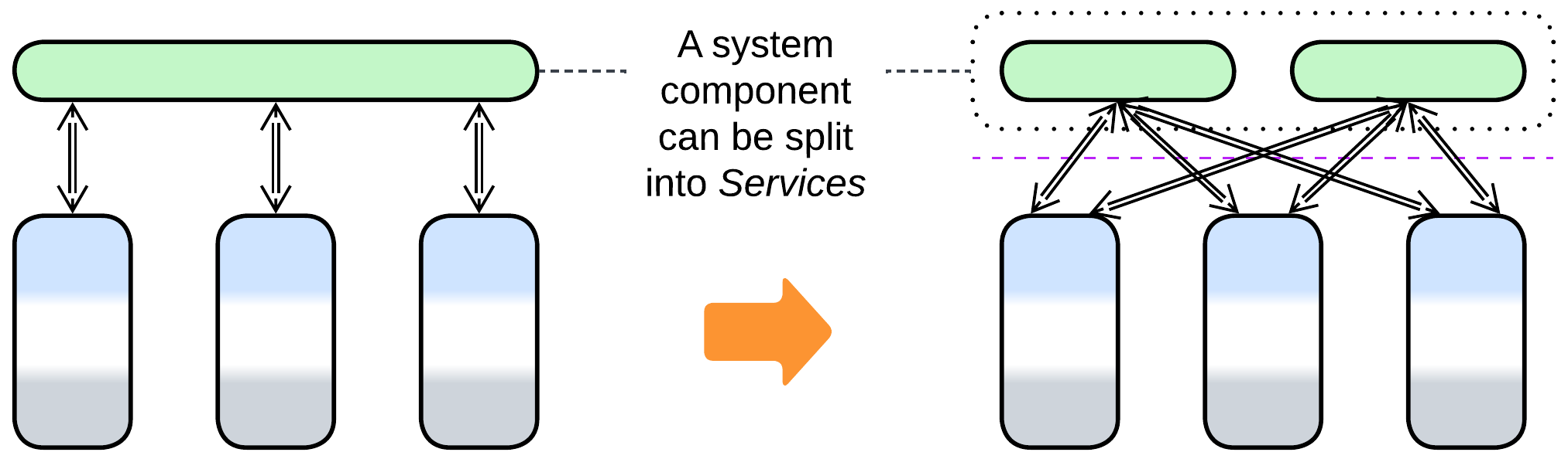 | Forces may vary by subdomain | No good way to share state between services |