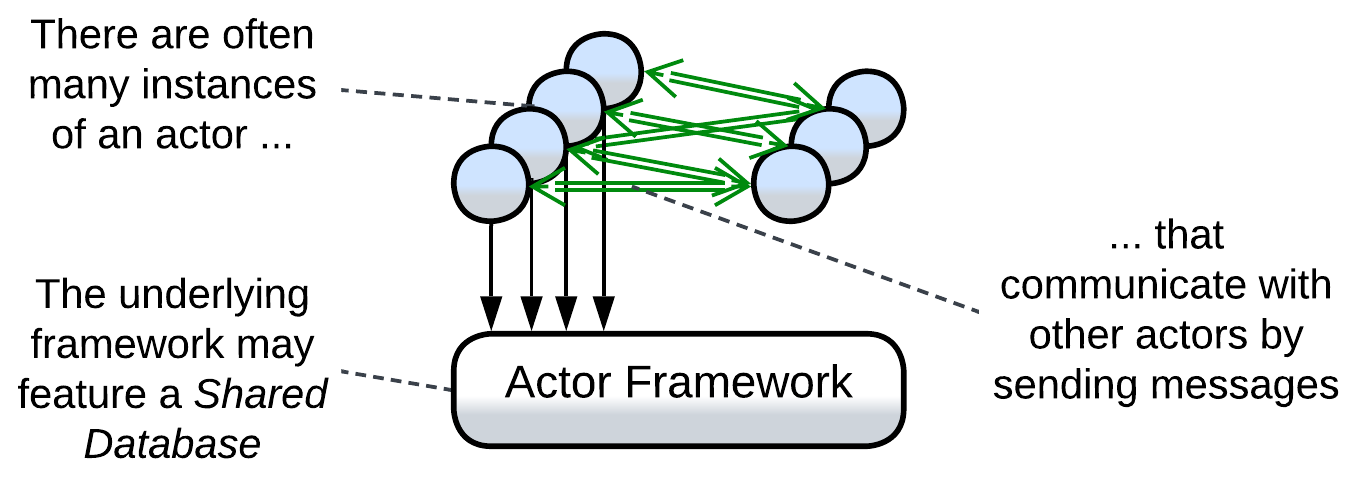 Actors have long been used in telephony (which is the domain where real-time communication meets complex logic and low resources) and with the invention of distributed runtime environments (e.g. Erlang/OTP or Akka) they found their place in messengers and banking which need to interconnect millions of users while providing personalized experience and history for everyone. Every user gets an actor that represents them in the system by communicating both with other actors (forming a kind of Mesh) and with the user’s client application(s).