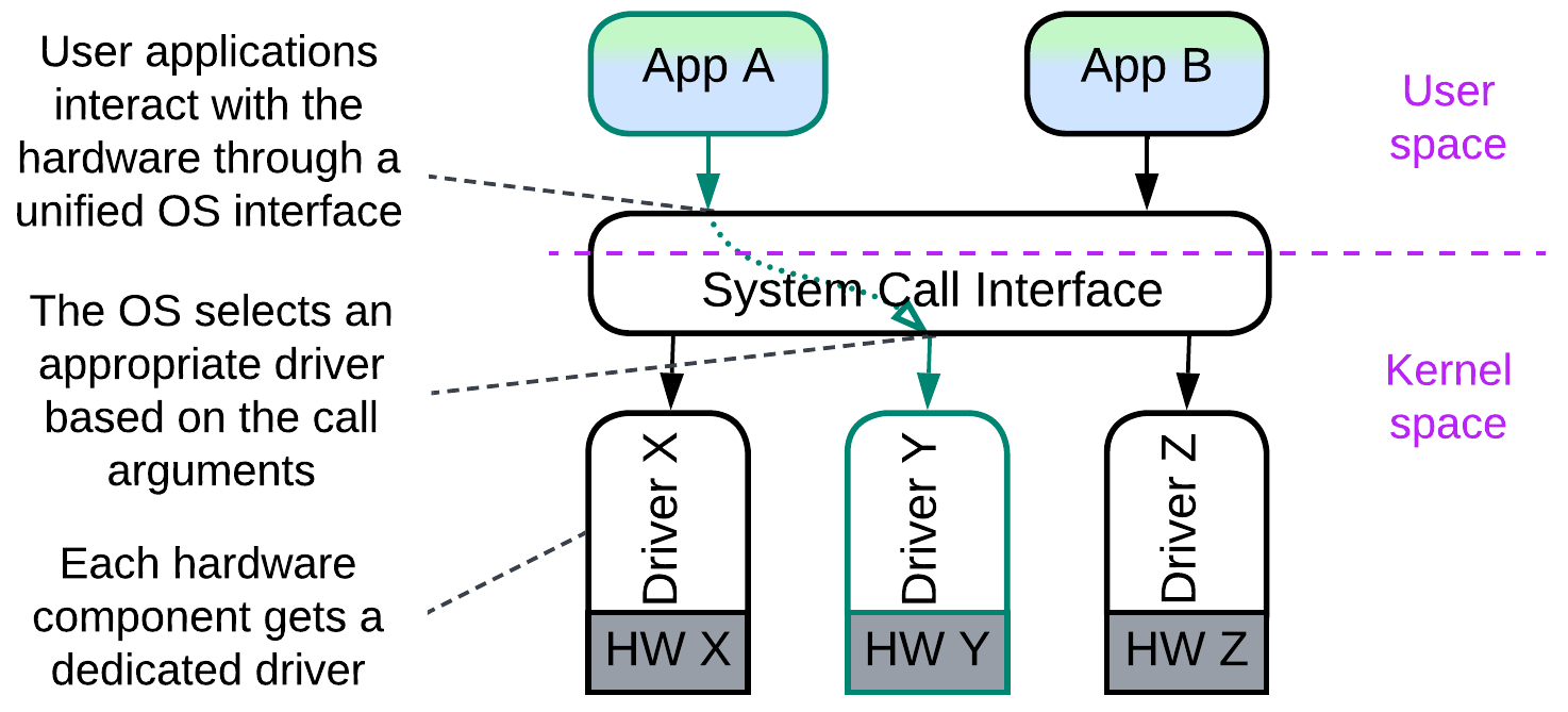 - Varied forces. In system and embedded programming, components of wildly varying behaviors need to be managed. Each of them is controlled by a dedicated service (called driver) which adapts to the specifics of the managed subsystem.