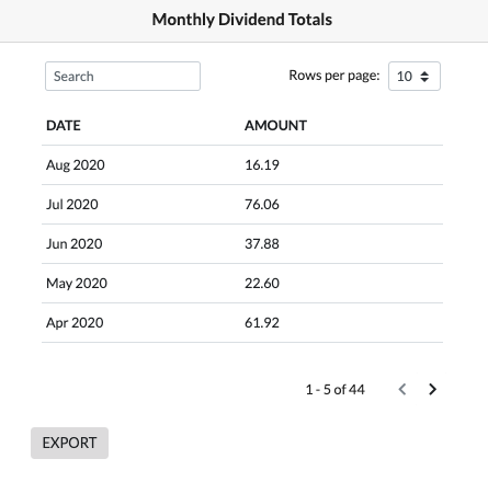 - Entries of type = dividend aggregated by month