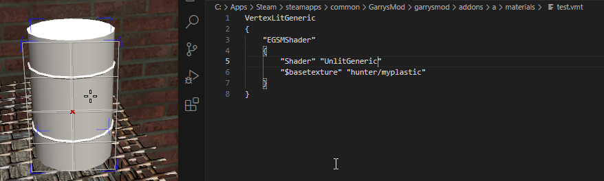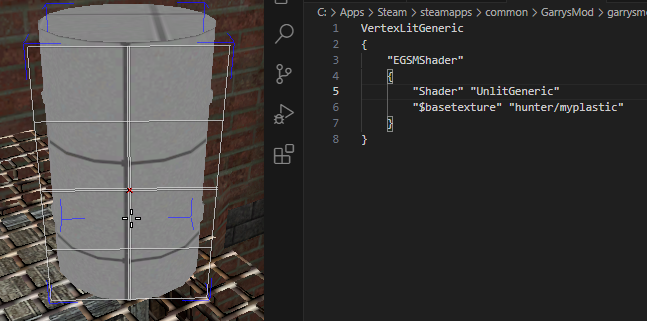 // Will only use params defined inside "EGSMShader" { ... } UnlitGeneric { "EGSMShader" { "Shader" "ShaderName" "$basetexture" "hunter/myplastic" } }