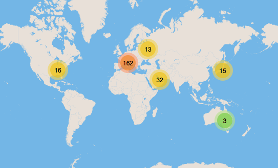 Show Map pin drop for confirmed cases with clustering for points that are in the same location