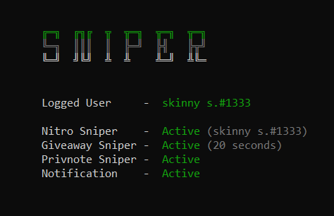 - Added use on alt, that means you can run sniper on alt account and if he snipes nitro, code will be redeemed on other account