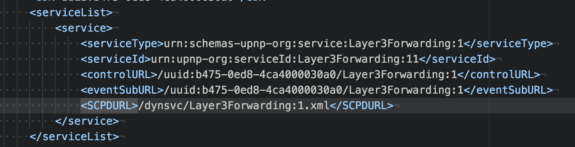 The HTTP request to the URL location mentioned in the SSDP response fetches an XML file describing all the services the device offer. Each of the service profile has an <SCPDURL> which again constitute of a relative location of the XML file which details more on each type of the service and the format for the requests.