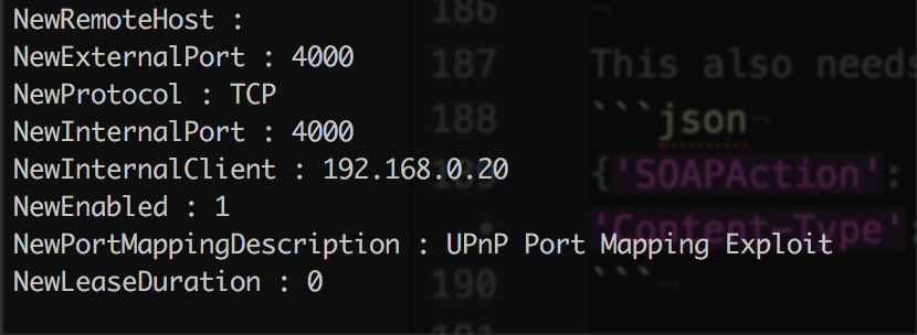 <NewPortMappingDescription>UPnP Port Mapping Exploit</NewPortMappingDescription>