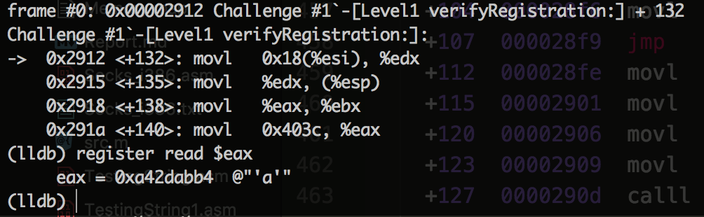 -[(%esp,1) substringWithRange:] Stack = Serial, substringWithRange, ESI = 4, EDI = 4The next interesting code snippet was a comparison one:
