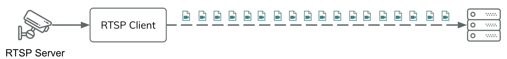 - RTSP client (based on openRTSP) receiving the data, generating 30-second long