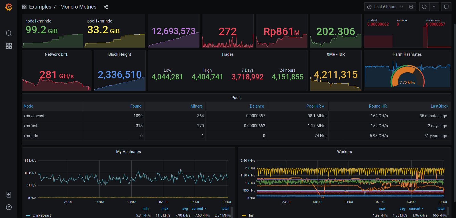 monerodRPC (NodeMetrics.sh) - XMRig worker metrics (XmrigMetrics.sh)